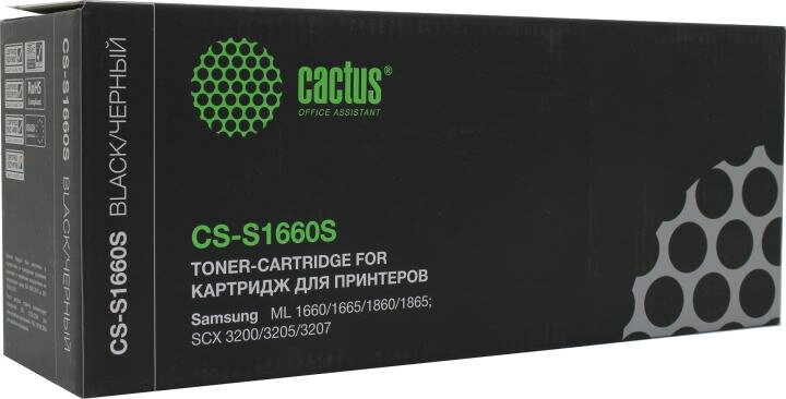 Картридж Cactus CS-S1660S, черный, 1500 страниц, совместимый для Samsung ML-1660/1665/1667; ML-1860/1865/1867; ML-1670/1675/1677; ML-1865W; SCX-3200/3205/3207/3205W