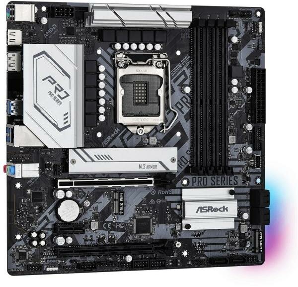 Материнская плата ASROCK B560M PRO4 (LGA 1200. Intel B560. 4xDDR4-3200 МГц. 2xPCI-Ex16. 2xM.2. Micro-ATX)