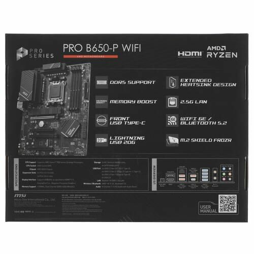 Материнская плата MSI PRO B650-P WIFI (PRO B650-P WIFI) - AM5, AMD B650, 4хDDR5-4800 МГц, 4хPCI-Ex16, 2хM.2, Standard-ATX
