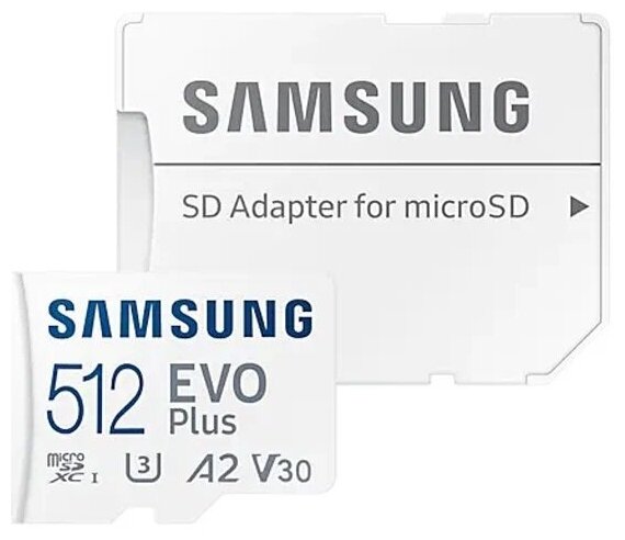 Карта памяти Samsung MicroSDXC 512GB EVO Plus U3, V30, A2 + адаптер