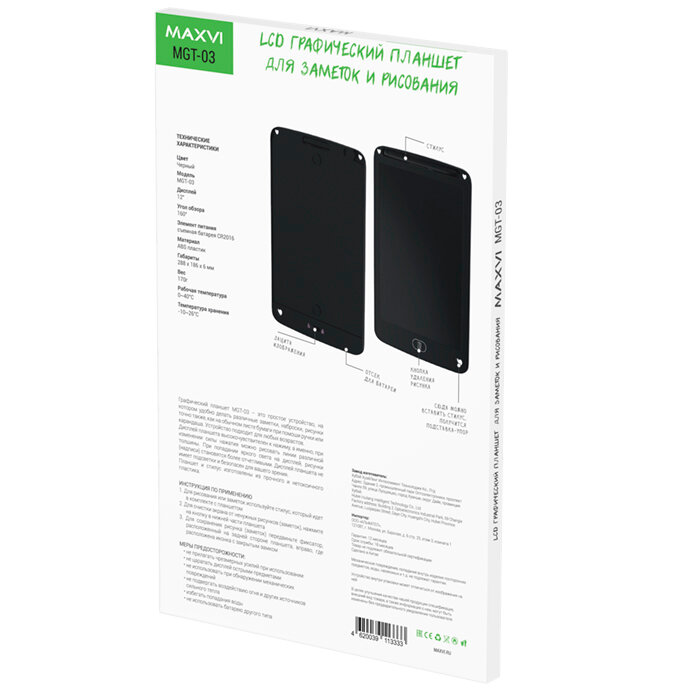 Планшет LCD для заметок и рисования Maxvi MGT-03 black MGT-03 black .