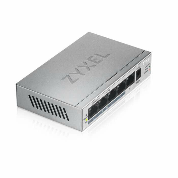 ZYXEL GS1005HP-EU0101F PoE+ коммутатор GS1005HP, 5xGE 4xPoE+ , настольный, металлический, бесшумный, бюджет PoE 60 Вт