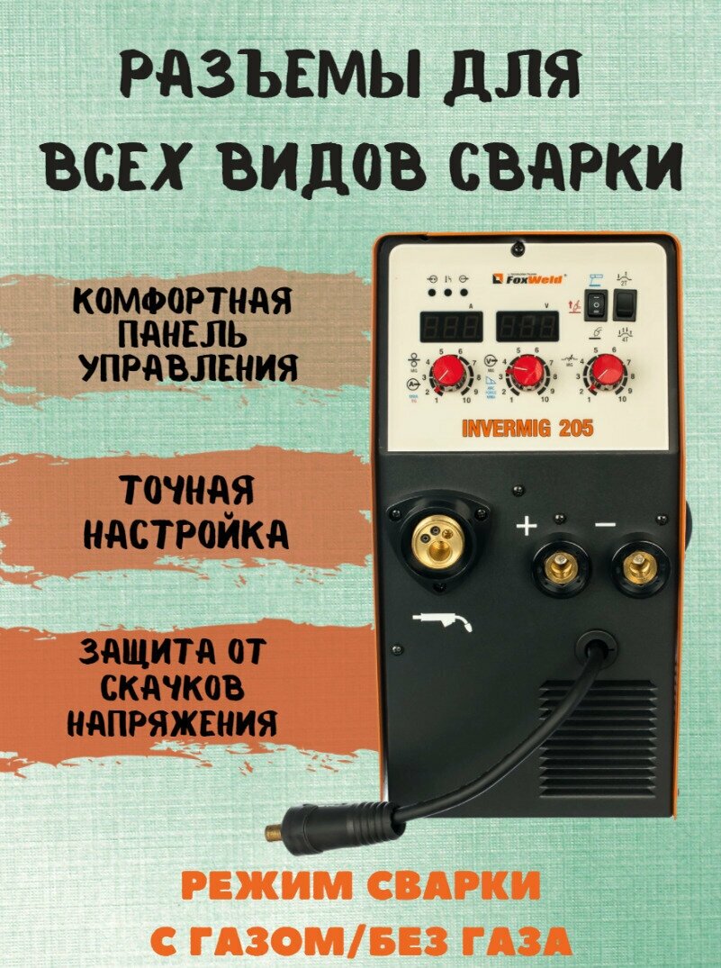 Foxweld Сварочный полуавтомат Invermig 205 полуавтоматический инверторный mig mag, сварка без газа, с газом, варит электродом, LIFT TIG