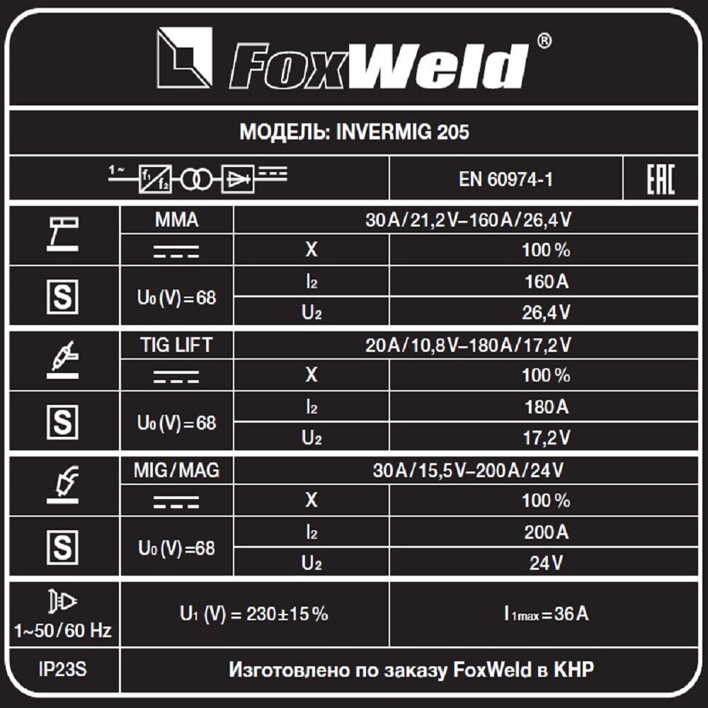 Сварочный аппарат инверторного типа FoxWeld InverMIG 205, TIG, MMA, MIG/MAG