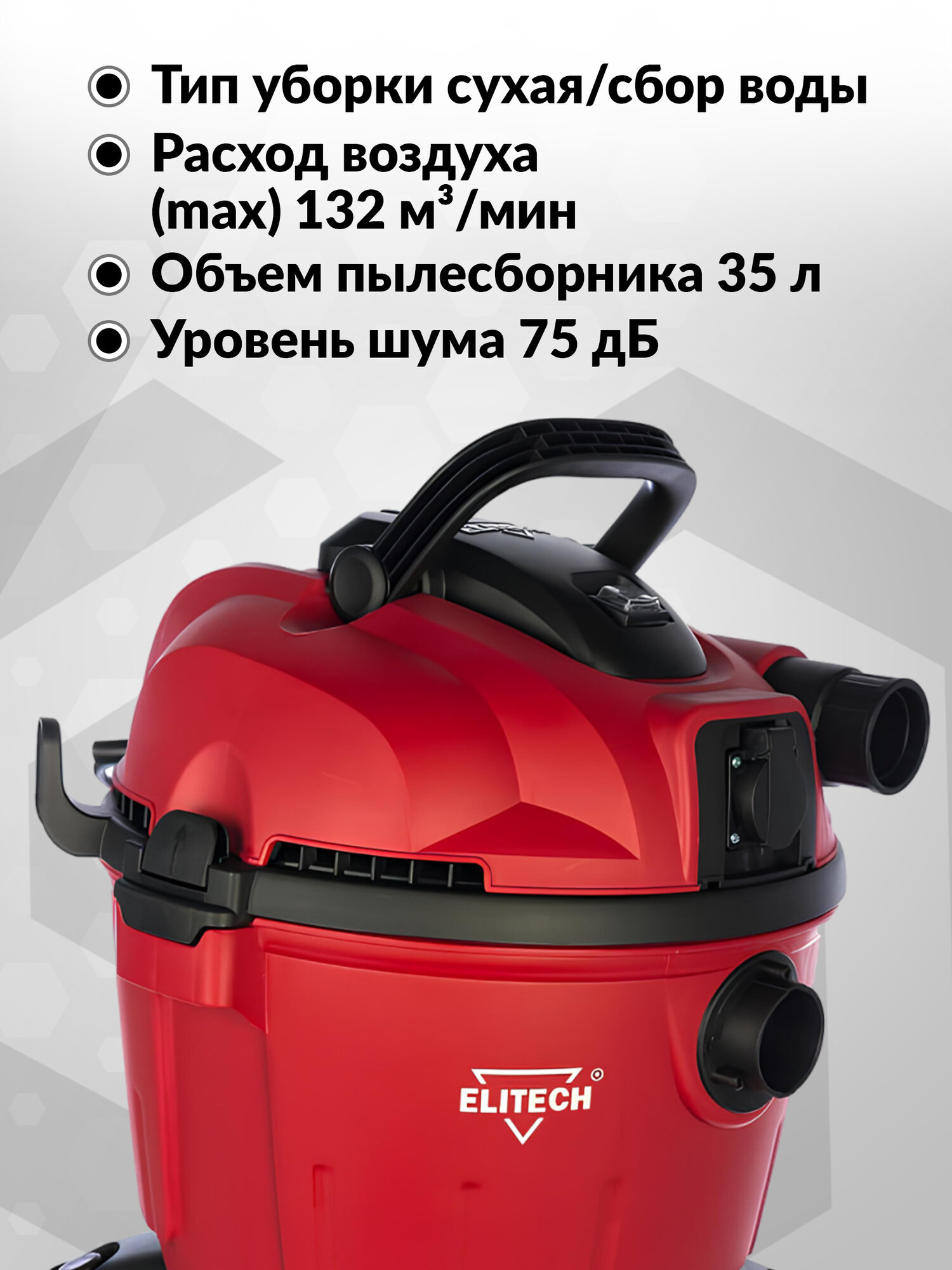 Строительный пылесос Elitech ПС 1235А 1200Вт (уборка: сухая/сбор воды) красный