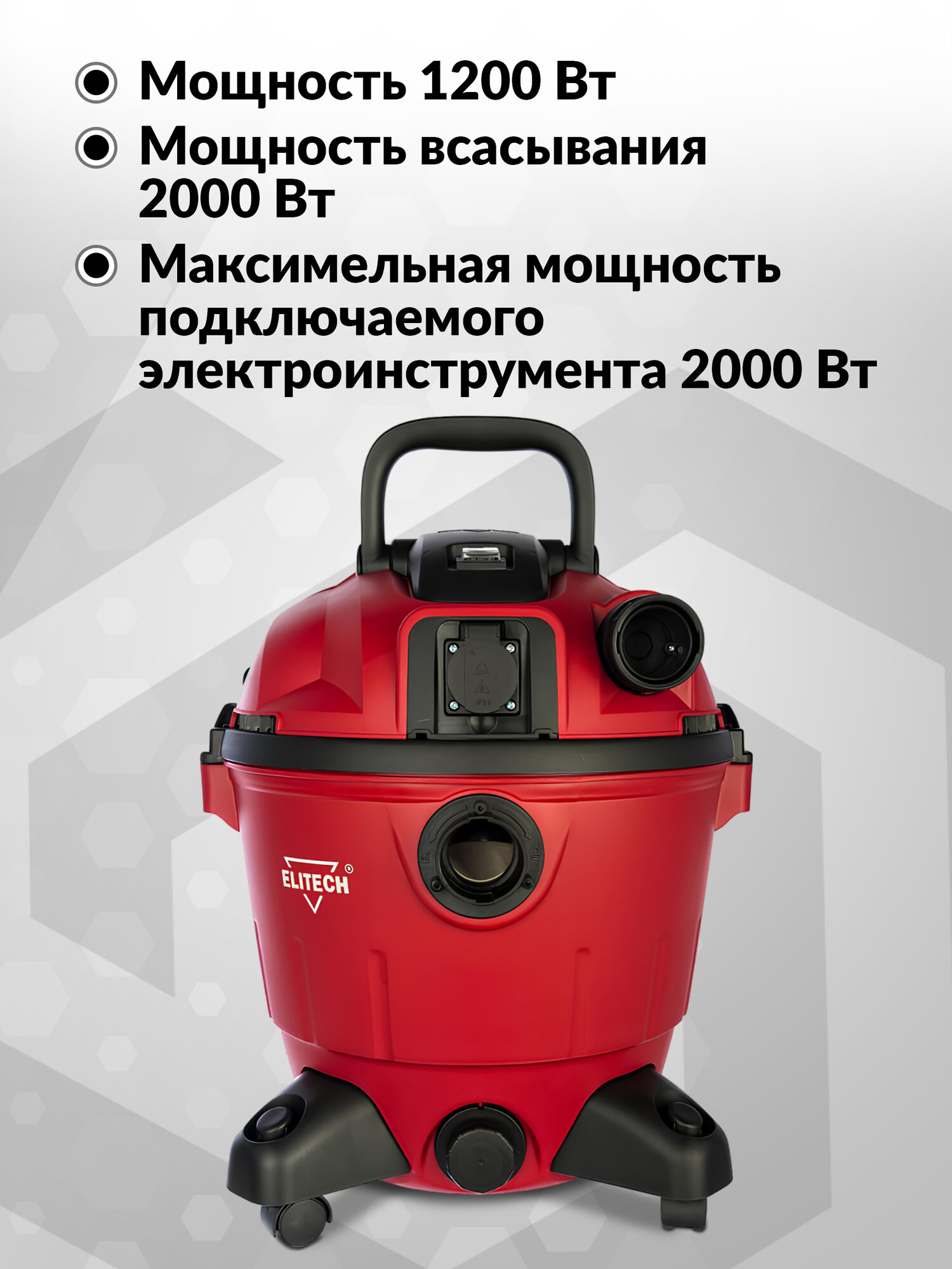 Профессиональный пылесос ELITECH ПС 1235А, 1200 Вт, красный