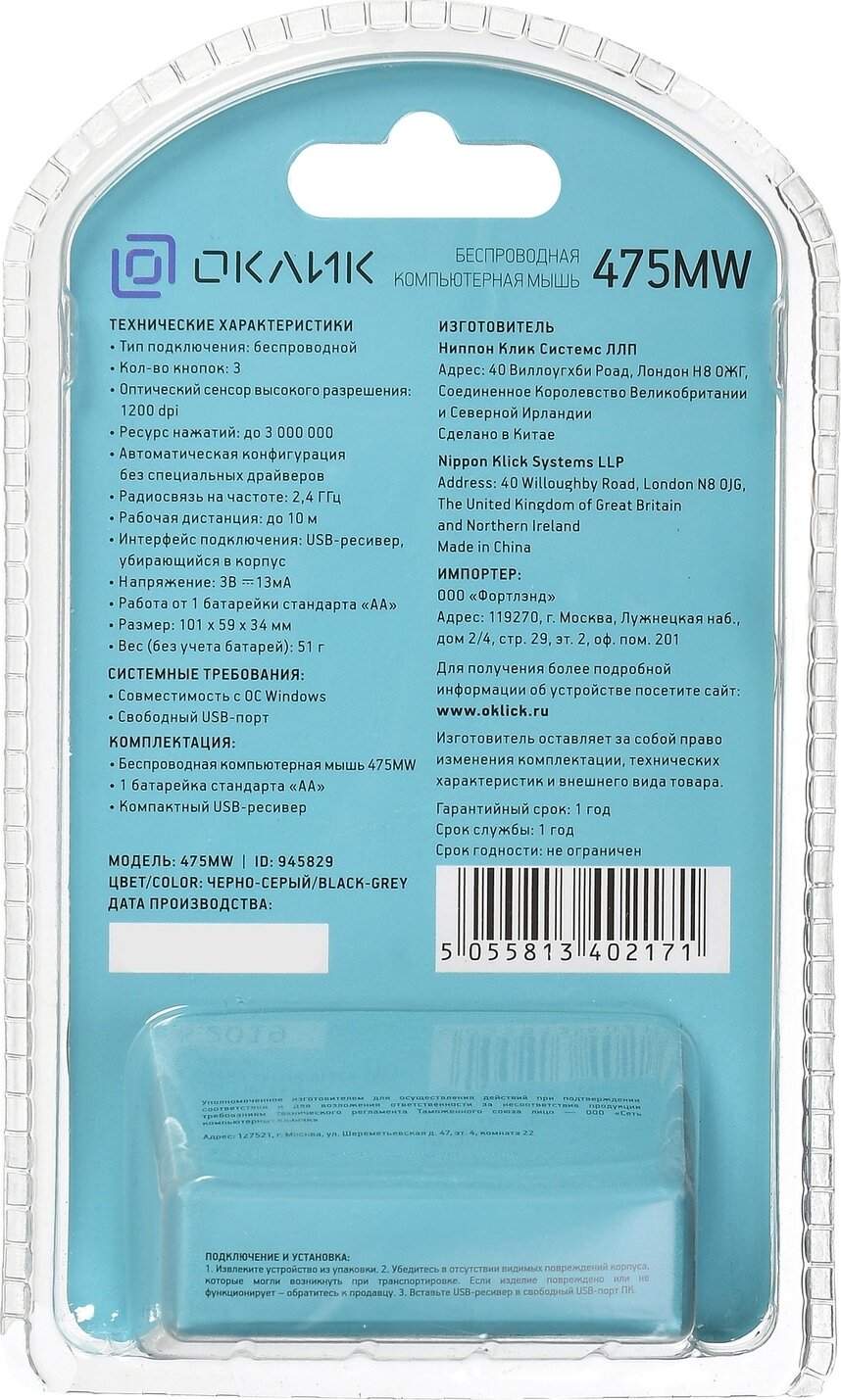 Мышь Oklick 475MW 945829 .