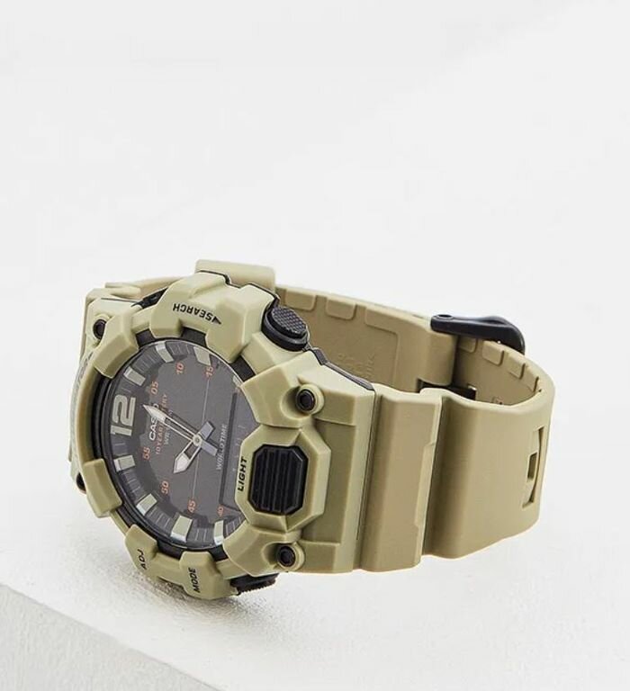 Наручные часы CASIO Collection HDC-700-3A3 кварцевые, будильник, хронограф, шагомер, секундомер, таймер обратного отсчета, водонепроницаемые, противоударные, подсветка стрелок, подсветка дисплея, хаки