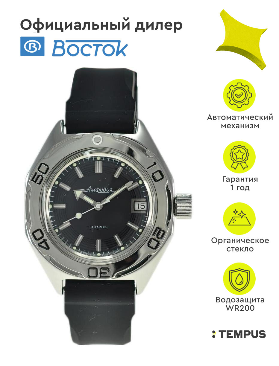 Мужские наручные часы Восток Амфибия 670922-resin-black, резина, черный