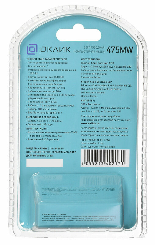 Мышь Oklick 475MW 945829 .