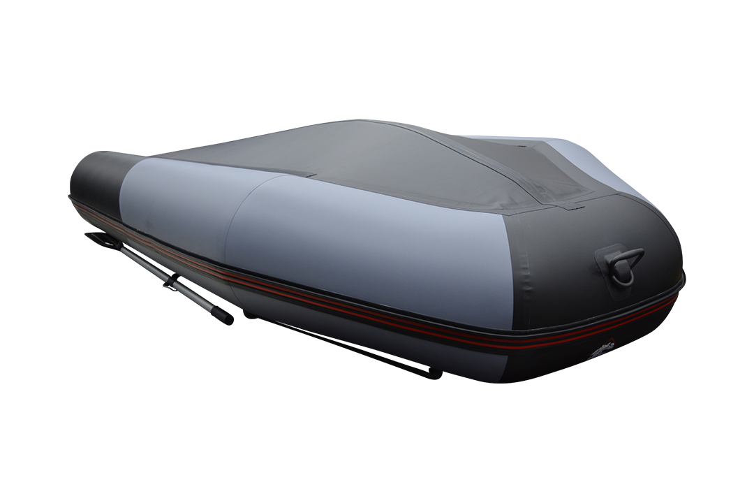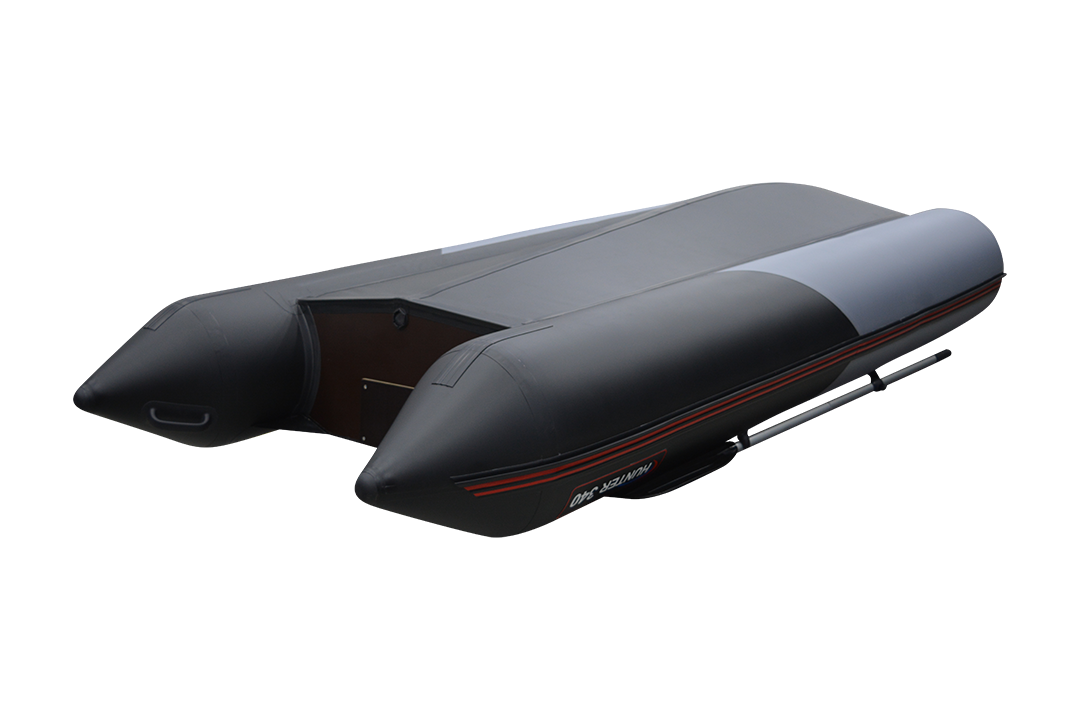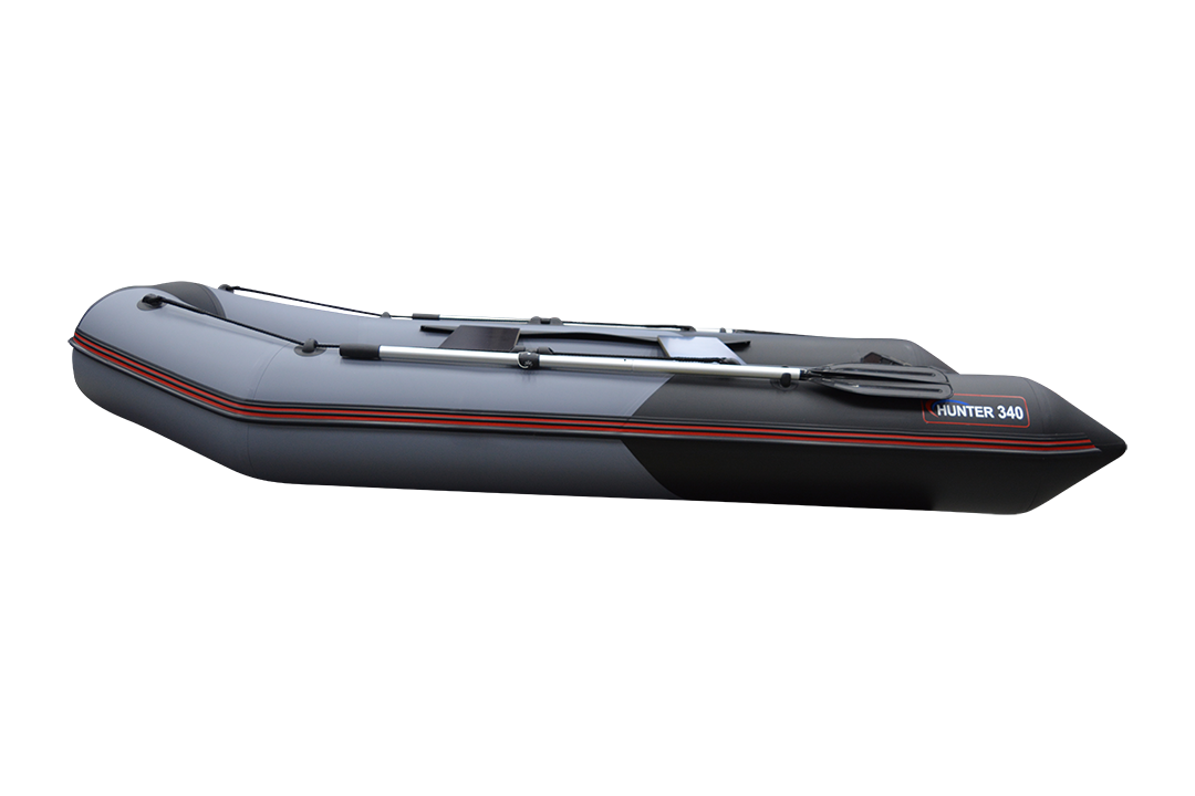 Надувная ПВХ лодка под мотор Хантер 340 с жестким дном, килем, 3 + 1 места, цвет серый, черный