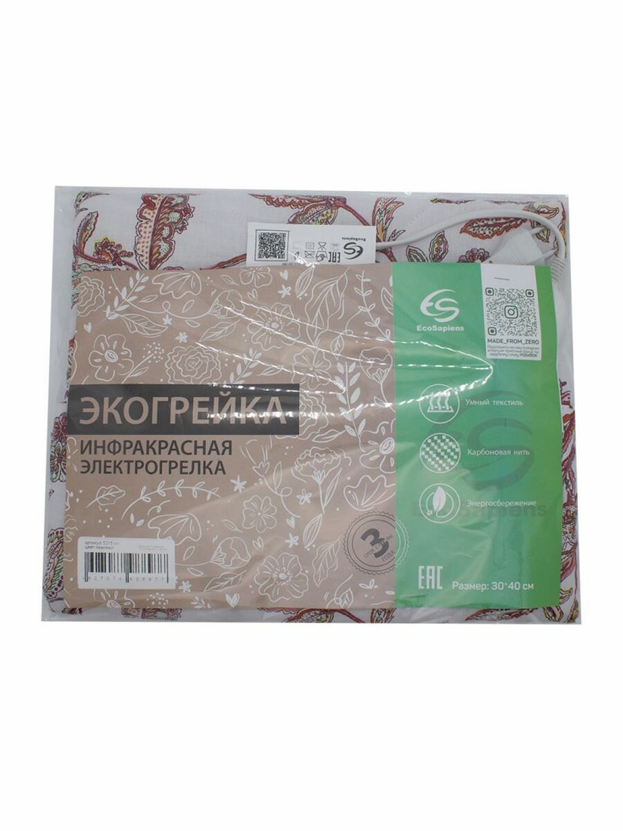 Грелка электрическая EcoSapiens Экогрейка S315 oo, 2 режима, термодатчик, инфракрасная, 35 Ватт, 30х40 см