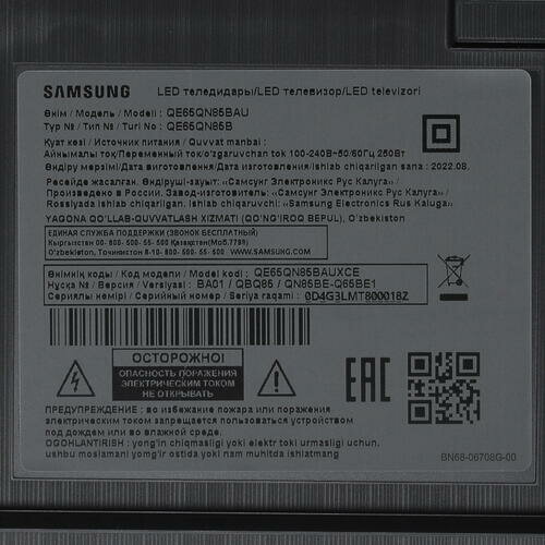 Телевизор SAMSUNG QE65QN85BAUXRU, QLED, 4K Ultra HD, черный