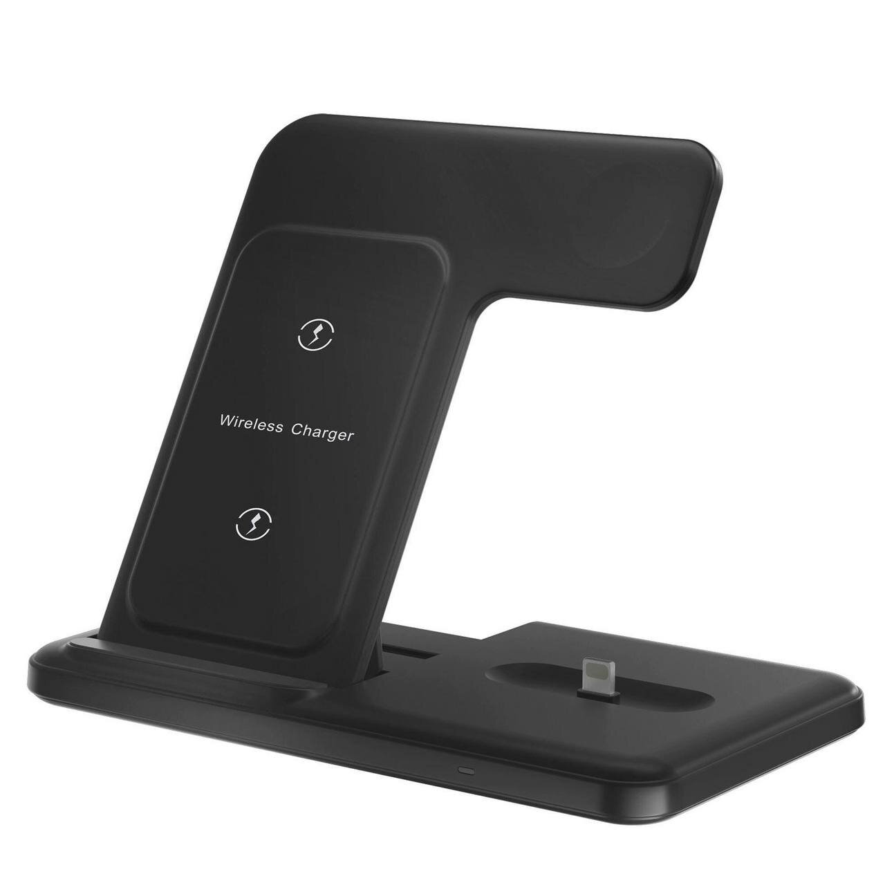 Купить Беспроводная зарядная Док Станция 3 в 1 для портативной зарядки телефонов, умных смарт часов и наушников (черный)