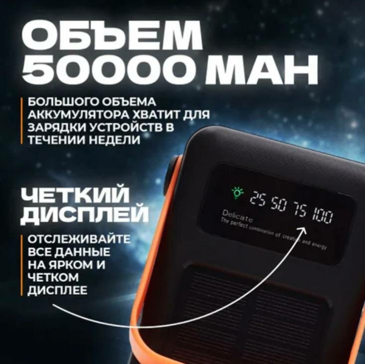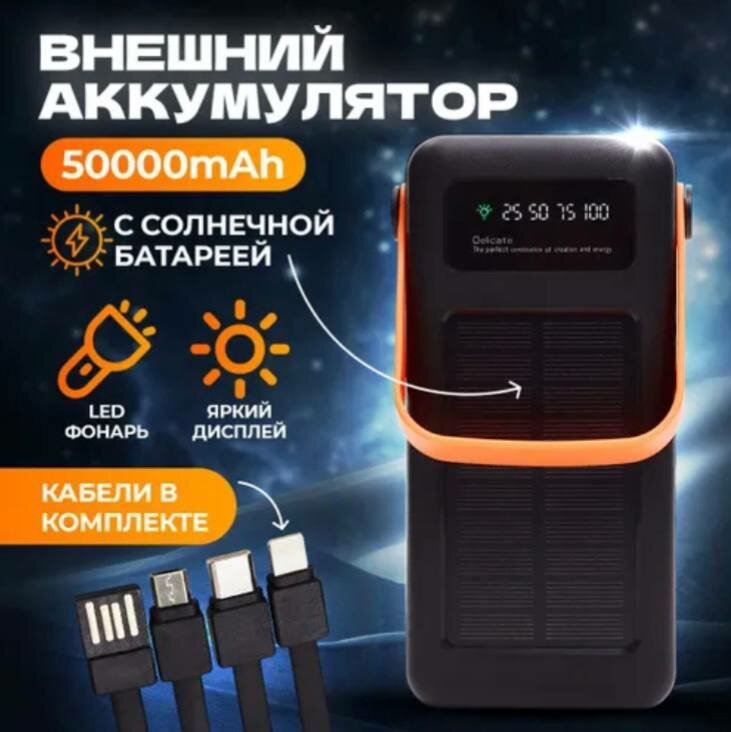 SENNBEYER power bank 30000 мАч, солнечная батарея, с кабелем и экраном.