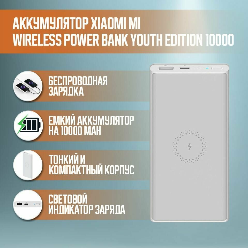 Беспроводной внешний аккумулятор повербанк Xiaomi Wireless Power Bank Youth Edition 10000 mAh WPB15ZM (Silver)