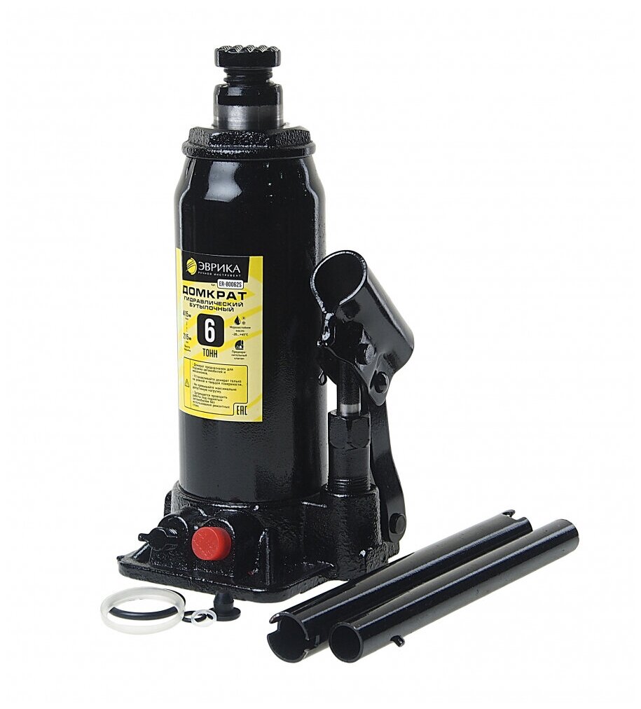 Домкрат гидравлический ER-80062S бутылочный с клапаном 6т, ремкомплект (выс. подъема 215-415мм) в к, эврика ER80062S (1 шт.)