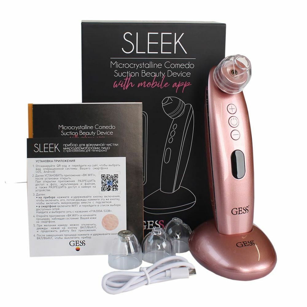 Прибор для вакуумной чистки и микродермабразии лица с микрокамерой и приложением Gess Sleek GESS-145