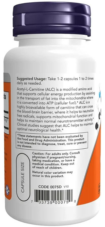 СохранитьNOW FOODS Acetyl L-Carnitine 500 мг (Ацетил L-карнитин) 50 вег капсул (Now Foods) интересное: