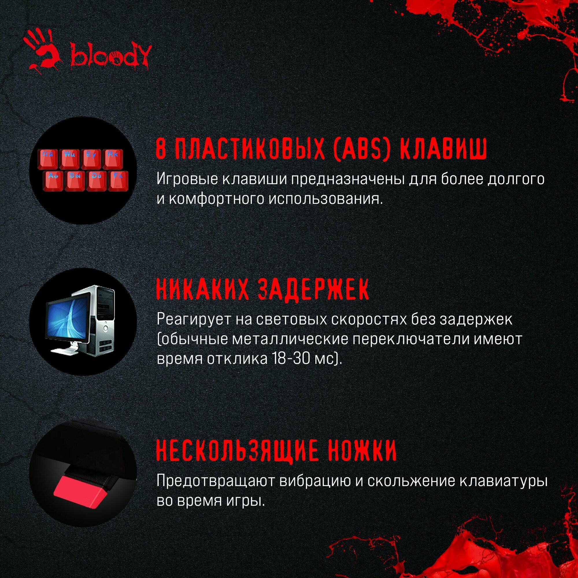 Клавиатура A4Tech Bloody B314, русские и английские буквы, черный (b314)