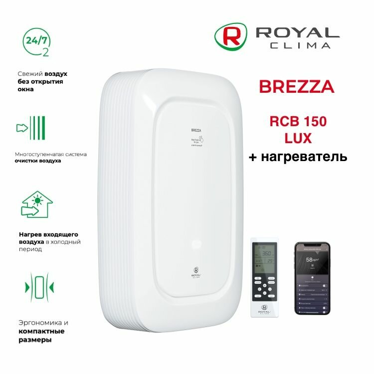 Очиститель воздуха, Система приточной вентиляции Royal Clima Brezza RCB 150 LUX с нагревателем, белый