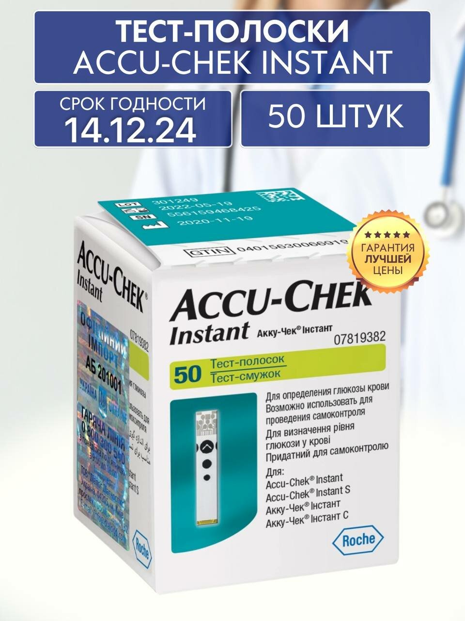 Тест-полоски "Акку-Чек Инстант" (Accu-Chek Instant) 50 штук, срок годности 06.2025