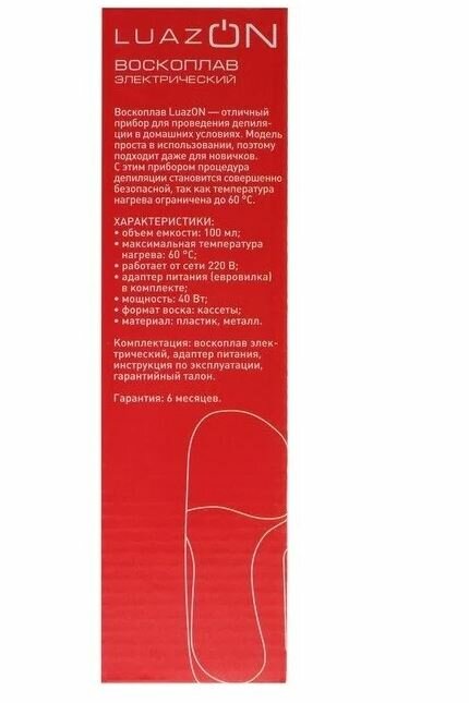 Купить Luazon Home Воскоплав LuazON LVPL-01, кассетный, 1 кассета, 40 Вт, нагрев до 60 °C, 220 В, белый