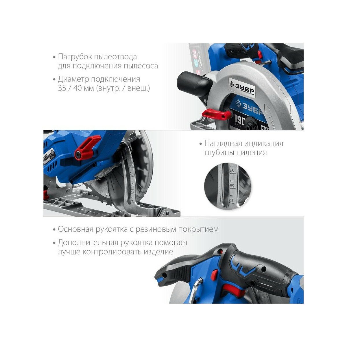 Аккумуляторная дисковая пила ЗУБР CPB-190-41 Li-Ion, 4Ач, синий/серый