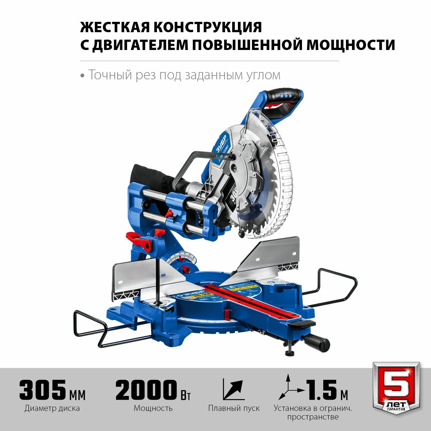 Торцовочная пила Зубр ППТ-305-П 2000Вт 5000об/мин d=305мм
