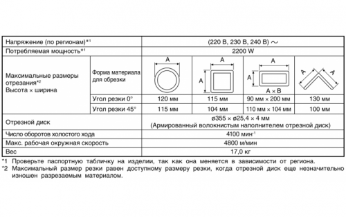 | Глубина пропила (45°) | 115 мм |