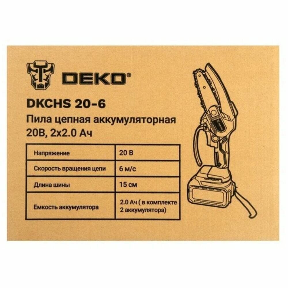 Ниже Вы можете прочитать отзывы на Пила цепная аккумуляторная DEKO DKCHS 20-4, 20В, 1x2.0Ач (063-4307), ознакомится с подробными характеристиками, посмотреть интересные обзоры и фотографии на Пила цепная аккумуляторная DEKO DKCHS 20-4, 20В, 1x2.0Ач (063-4307).