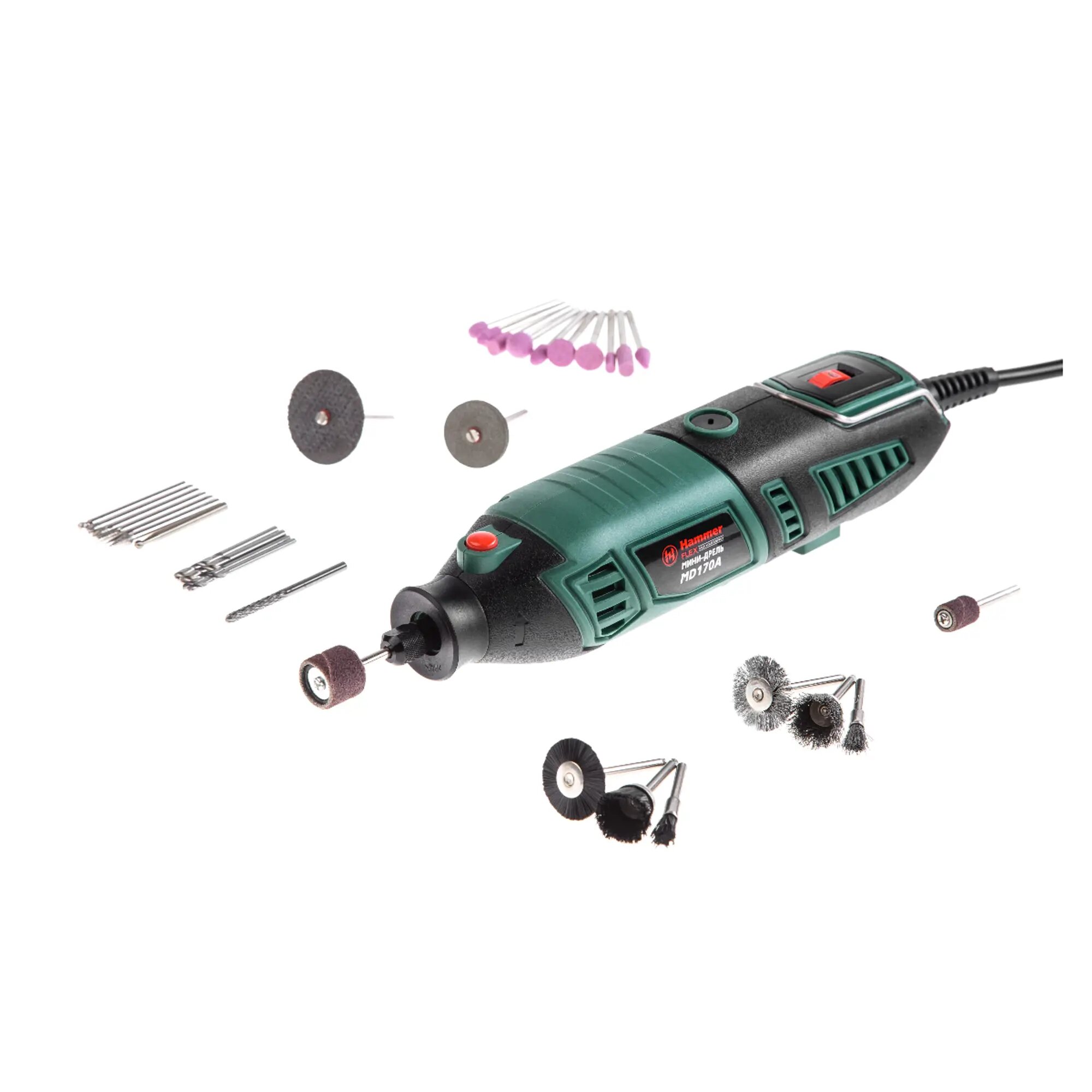 Дрель (мини) Hammer Flex MD170A 170Вт гибкий вал 8000-35000об/мин сумка + насадки 160шт.