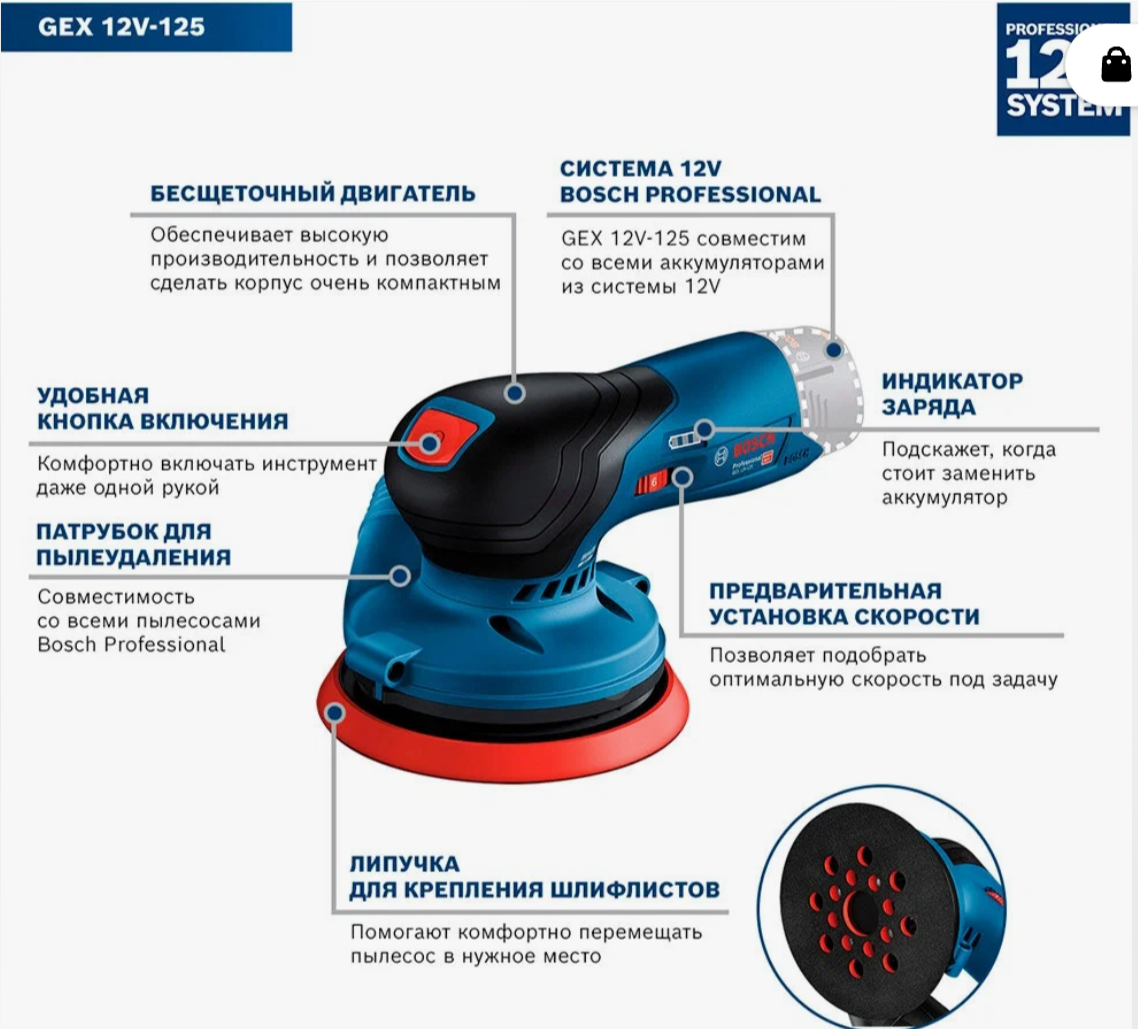 СохранитьШлифмашина Bosch GEX 12V-125 Professional 0601372101 (без АКБ) интересное: