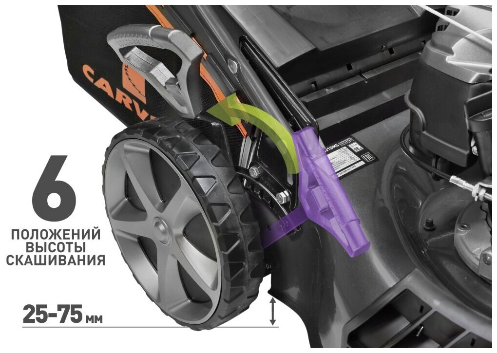 Газонокосилка бенз. CARVER LMG-2651DMS (2,6кВт/3,5л.с.,шир51см,выс.25-75мм,тр-к 65л,самох.)37,3кг