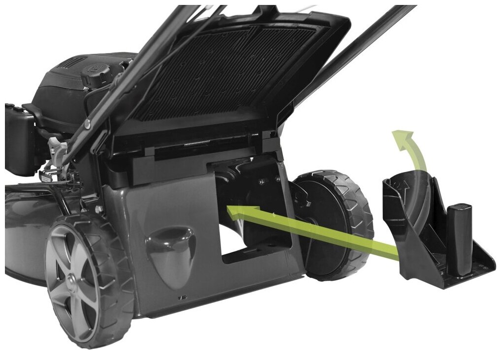 Значит лошадей тут явно меньше чем написано. В штиле 2.5 л.с. Но двигатель легко крутится и не глохнет когда заполнен травосборник. Самый главный минус это вес этой косилки! Её реально тяжело разворачивать. Оставляет следы от колес соответственно не подходят для покоса молодого газона. Колеса в мягком грунте вязнут и давят побеги. Травосборник реально хорош не смотря на то что не пластик. |