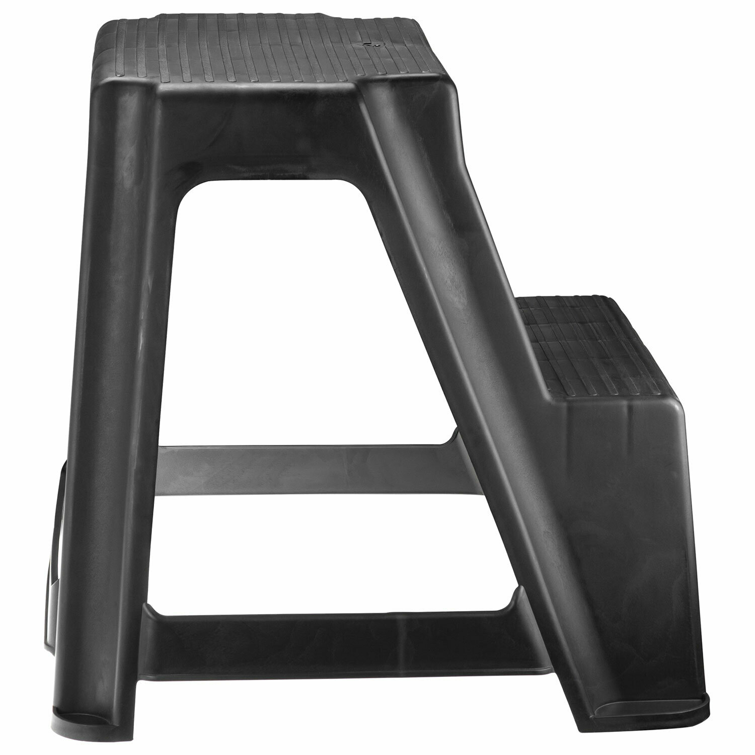 IDEA Стремянка - табурет, 2 ступени, стационарная, пластиковая, нагрузка 120 кг, вес 2,4 кг, черная, IDEA