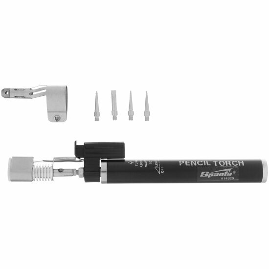 SPARTA 914325 Горелка газовая, тип "Карандаш" c пьезоподжигом + 4 насадки для пайки, 200 мм Sparta 914325 SPARTA 914325