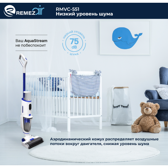 Вертикальный моющий беспроводной пылесос AquaStream S REMEZair RMVC-551