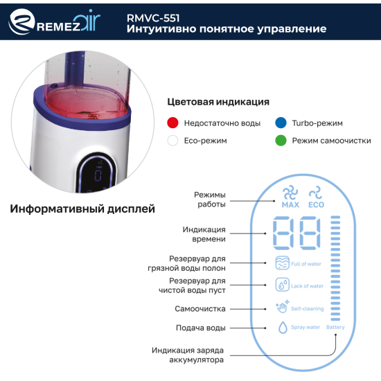 СохранитьВертикальный моющий беспроводной пылесос REMEZAIR AquaStream S, RMVC-551 интересное: