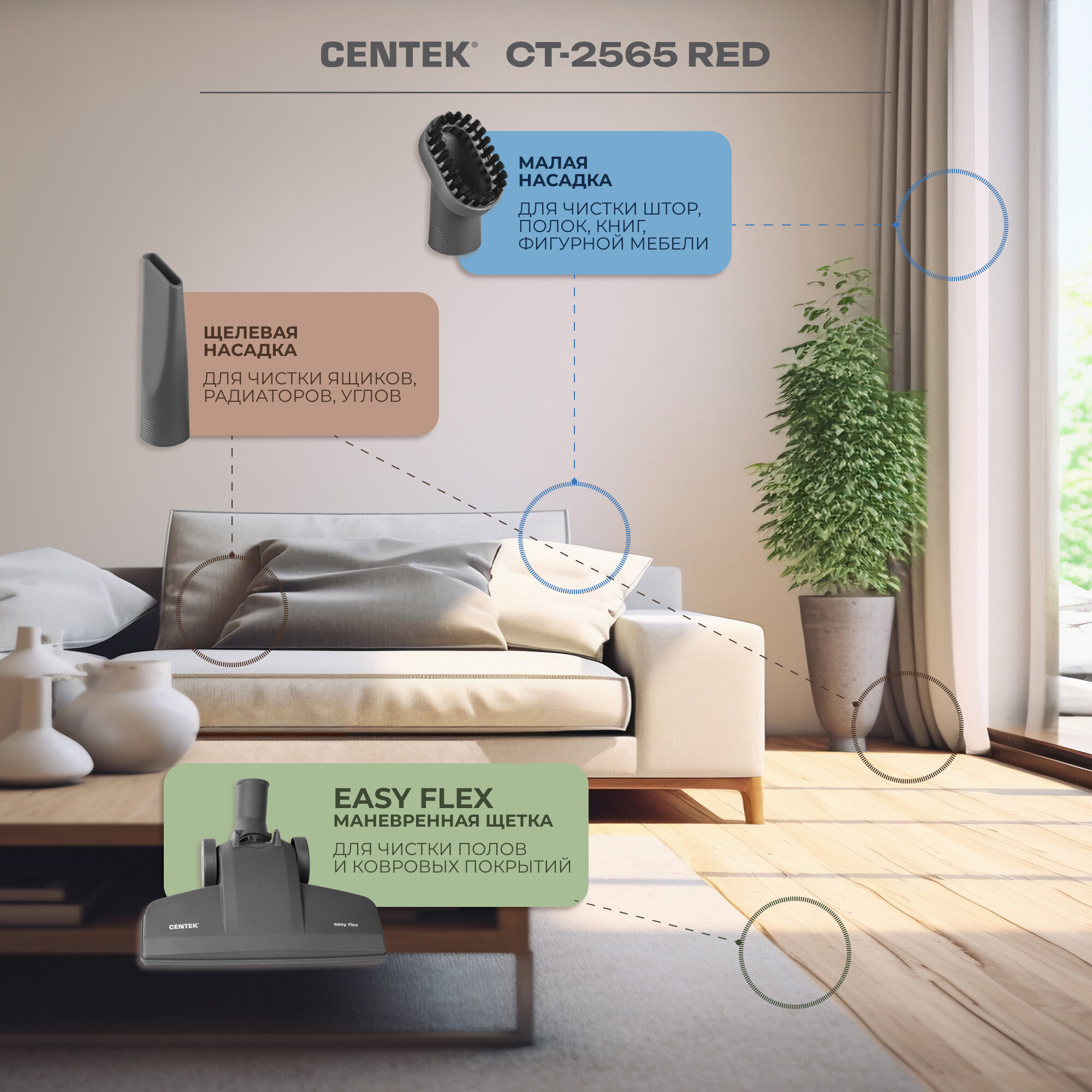 Пылесос Centek CT-2565 красный