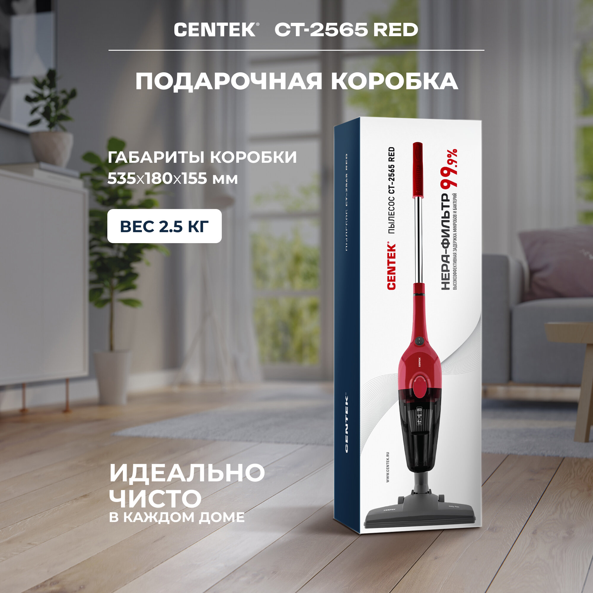 Купить Пылесос вертикальный Centek CT-2565 (красн.) /1000/200Вт, 1.2л, низкий ур шума, HEPA, дл. шнура 6 м