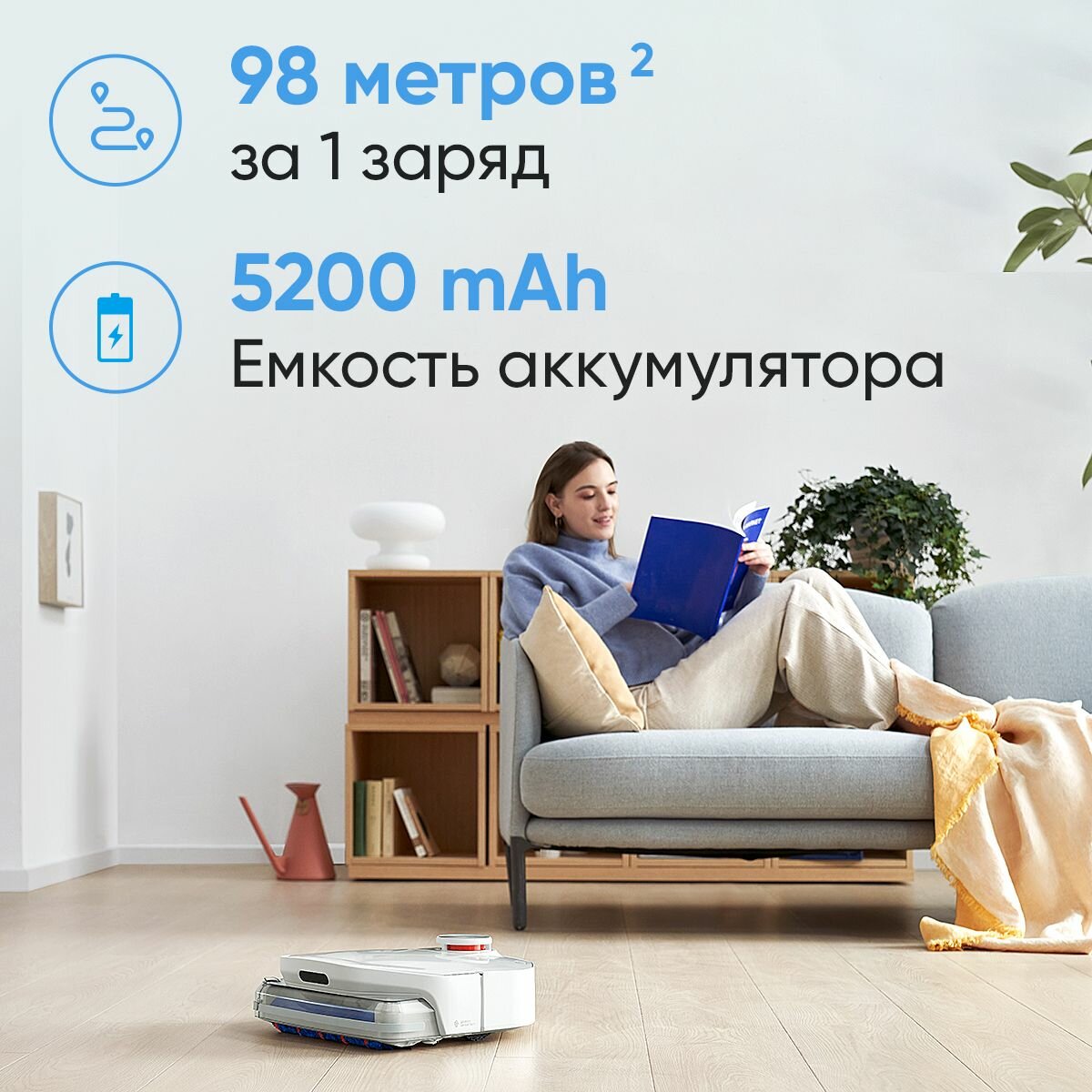 | Плюсы: | Очень долго выбирал модель. Нужна была именно функция влажной уборки, как основная. Если ситуация запущена, то придется покататься по несколько раз, функция отправить в конкретную комнату. Мыть контейнер не составляет сложности. Можно добавить жидкость Мистер пропер, чуть чуть только. |