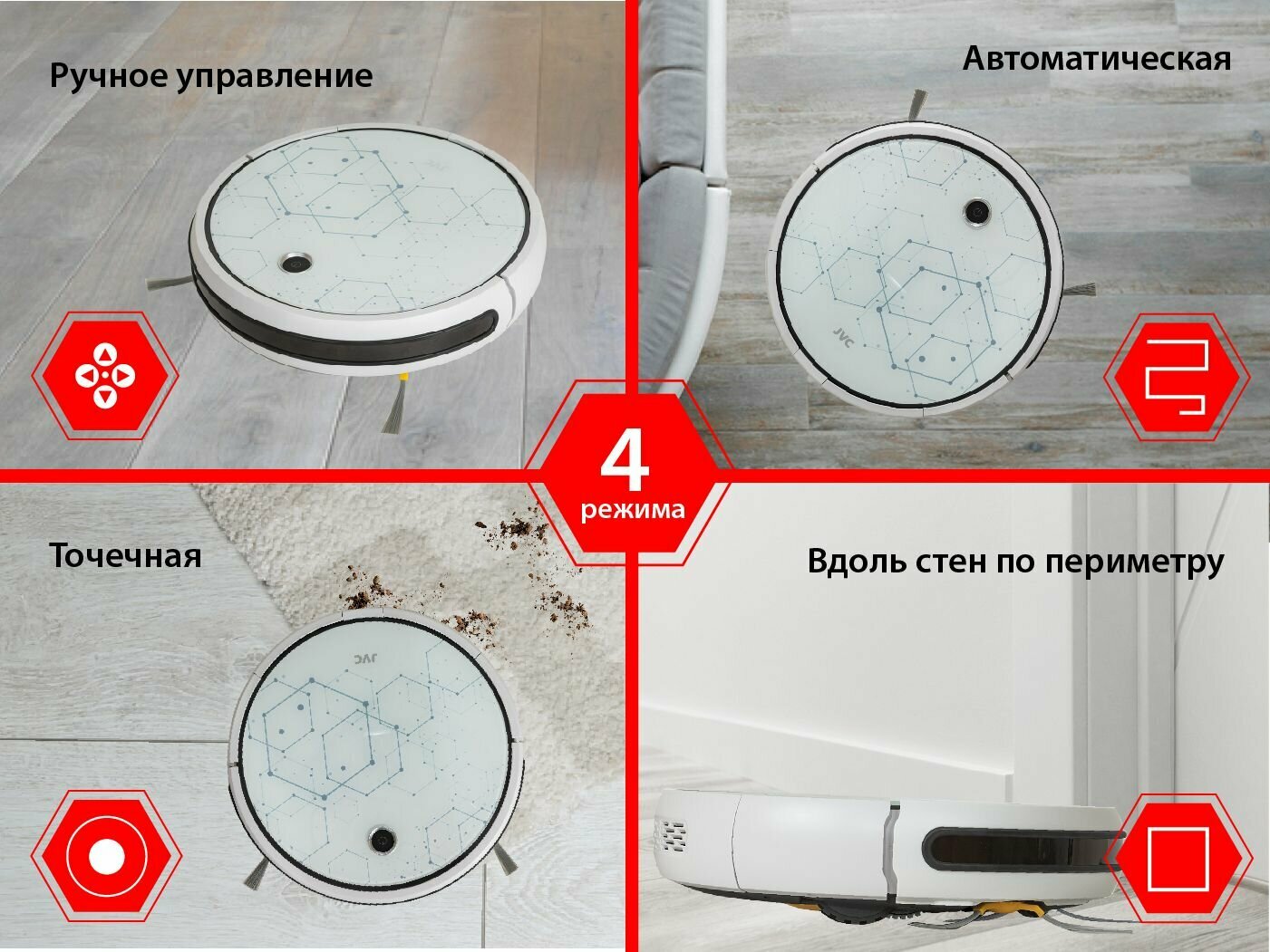 Робот - пылесос JVC 2 в 1 сухая и влажная уборка, 4 режима, турбо щетка, HEPA фильтр, голосовой помощник, смартфон-управление Smart life, Wi-Fi
