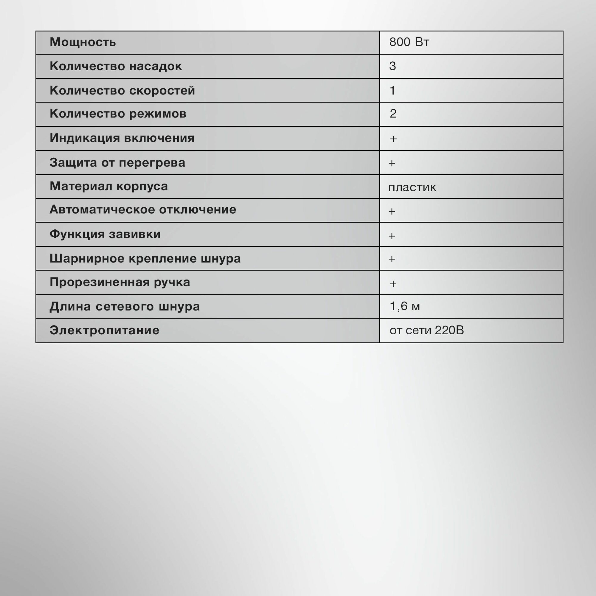 Мощность 800 Вт. В комплекте 3 насадки. Режим меняется на холодный воздух. Шнур вращается на 360 градусов. |