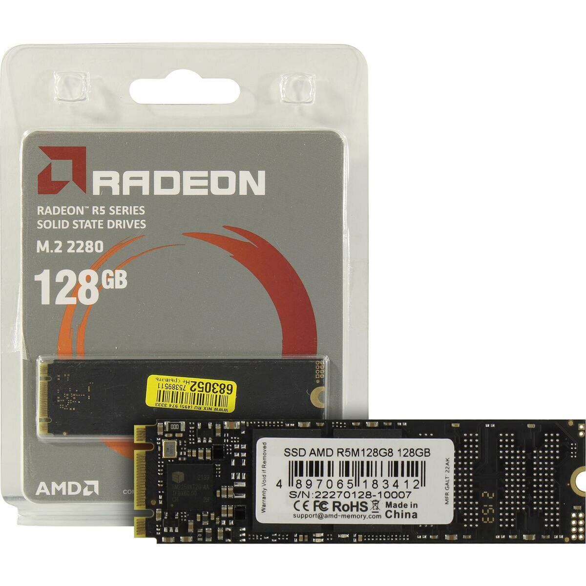 Твердотельный накопитель SSD M.2 2280 128GB AMD Radeon R5 Client R5M128G8 Sata 6Gb/s, 3D Tlc, RTL (1