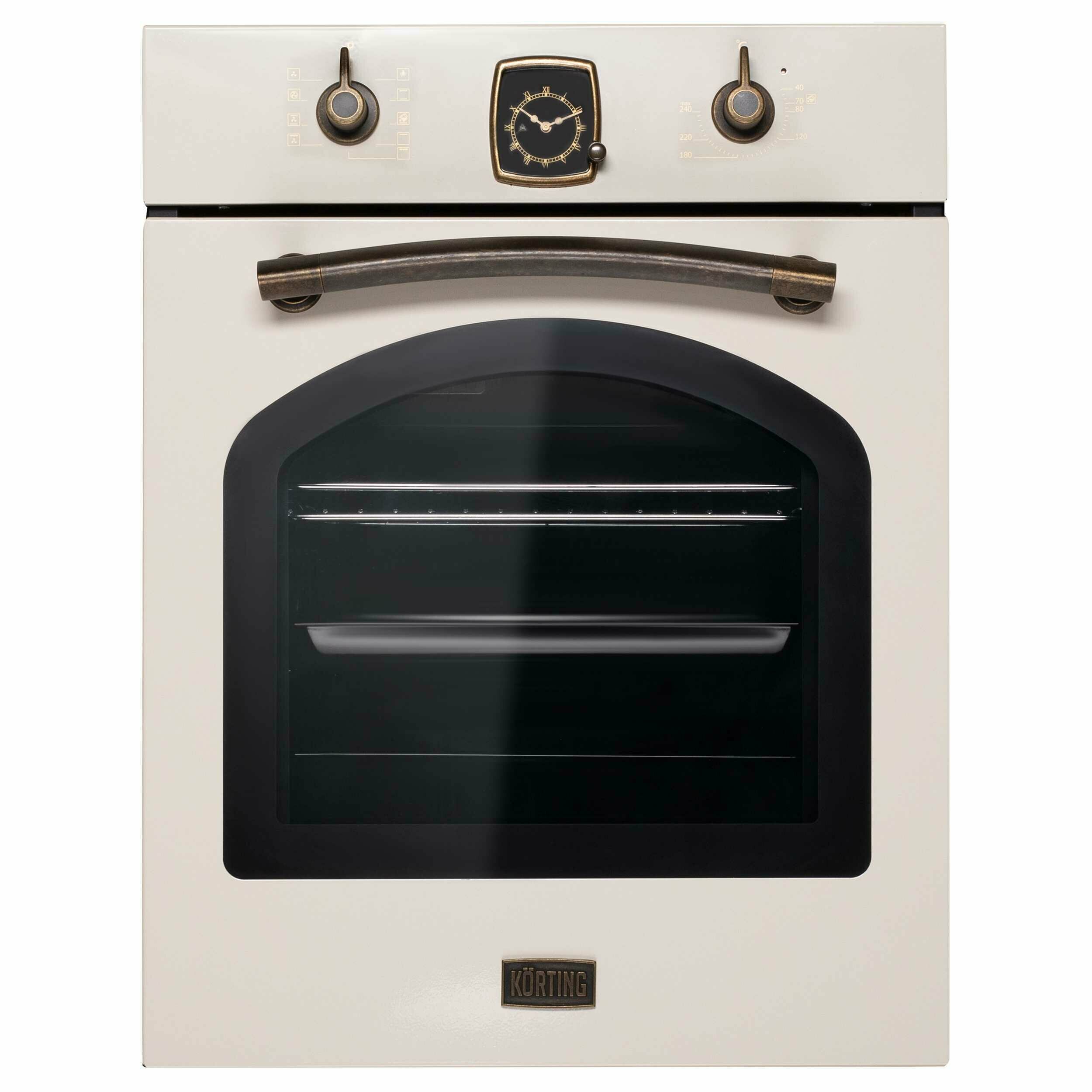 Электрический духовой шкаф Korting OKB 4941 CRB, ретро-дизайн, 9 режимов, таймер, каталитическая очистка, 45 см, бежевый