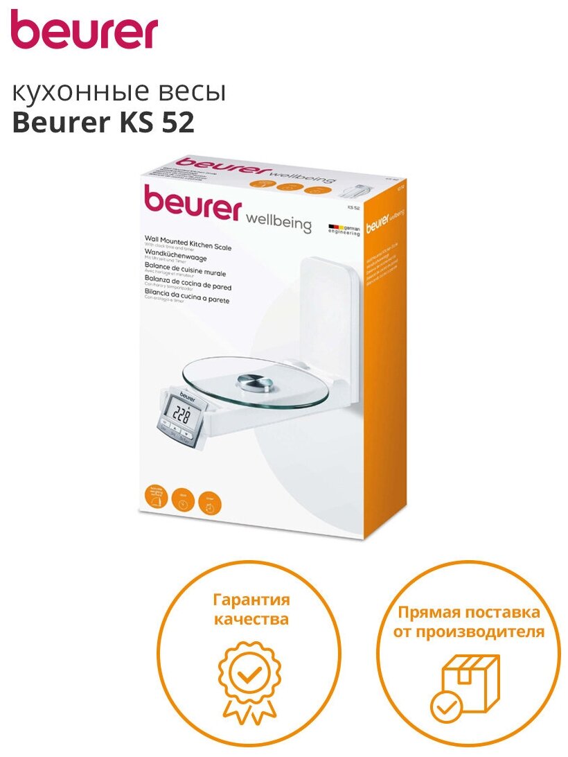 Кухонные весы Beurer KS52 белый, электронные,предел взвешивания 5кг, точость 1г