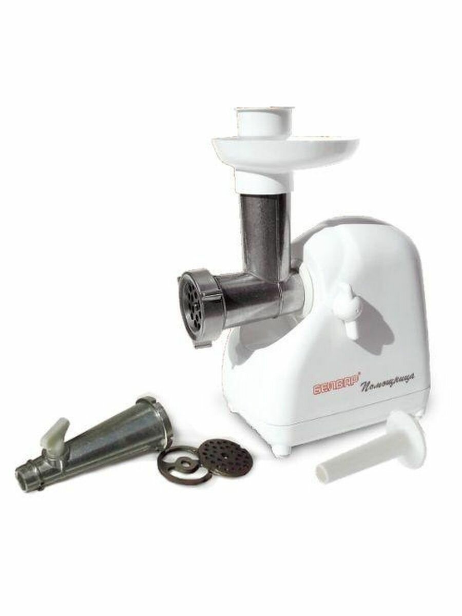 Мясорубка Белвар Помощница КЭМ-П2У 302-10, реверс, макс. мощность 1500 Вт, реверс, соковыжималка для мягких ягод и томатов, насадки для теста. колбас