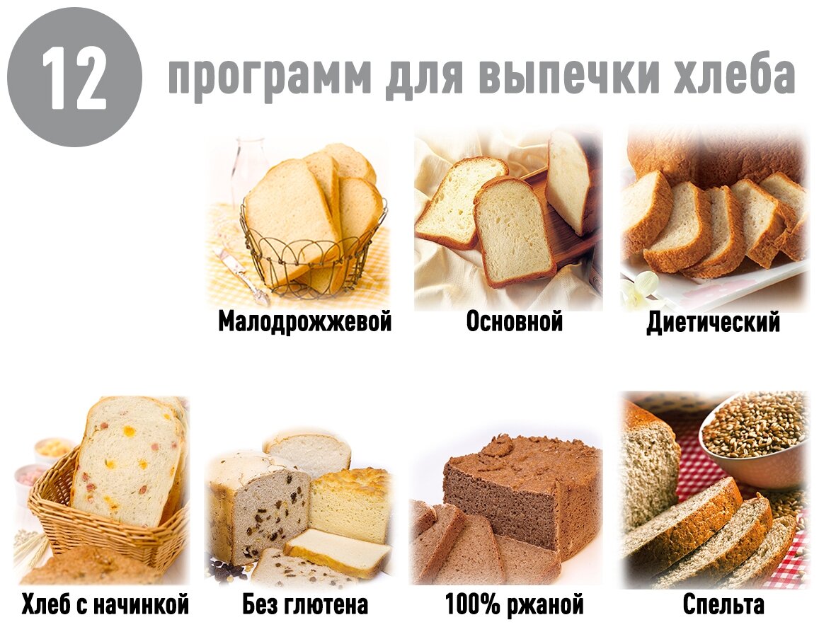 | Количество программ выпечки | 12 |