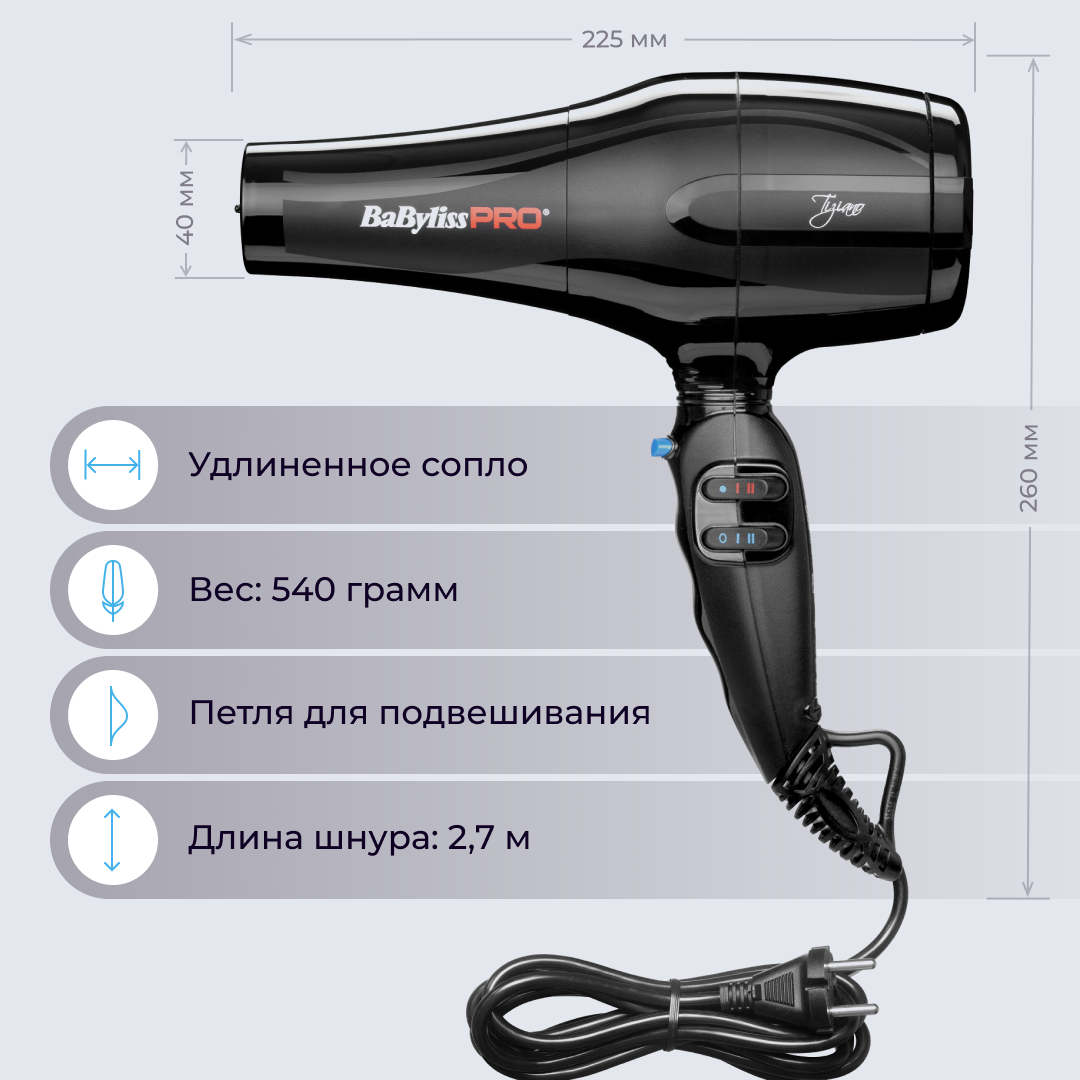 Фен BaByliss Pro Tiziano, 2100Вт, 2 насадки